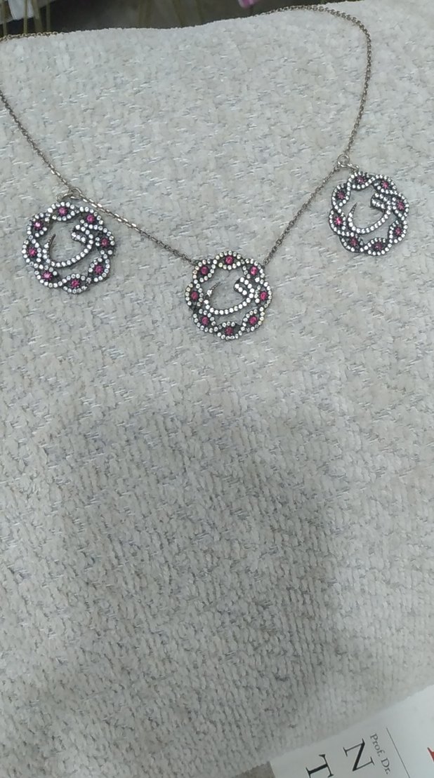 Uzun Zincir Detaylı Gri Nakışlı Kadın Kolye