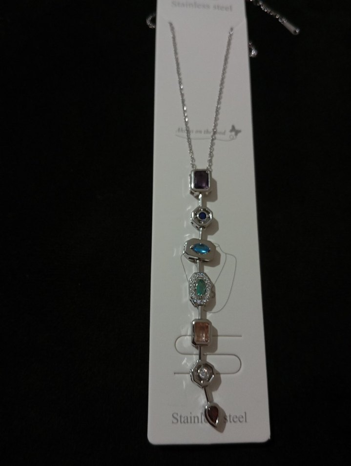Uzun zincir detaylı, çok renkli taşların yer aldığı kadın kolyesi. Minimalist ve bohem tarzlara uygun, günlük kullanıma uygun. Paslanmaz çelikten üretilmiştir.