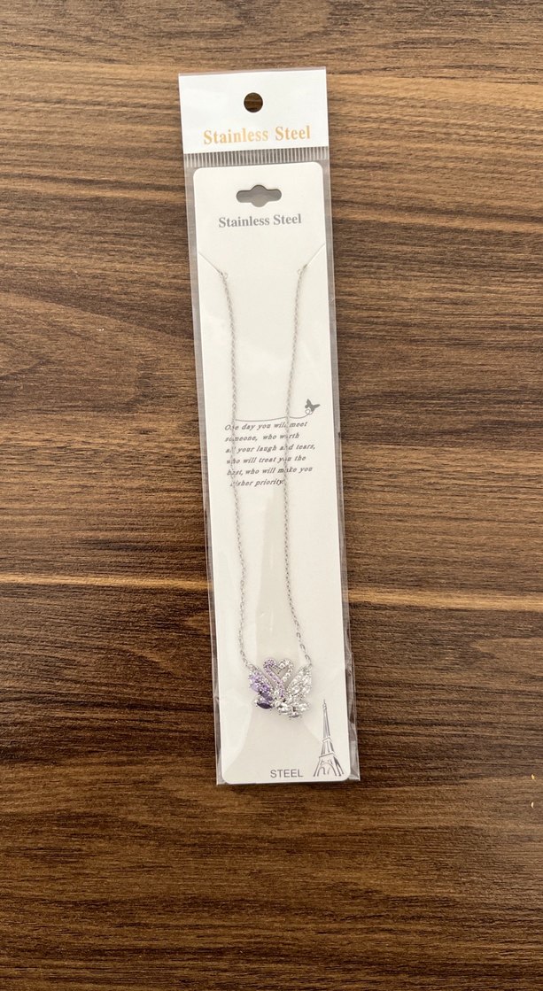Uzun zincir detaylı, hafif mor baskılı kolye, bohem tarzda ve paslanmaz çelikten üretilmiştir. Günlük kullanım için uygundur.