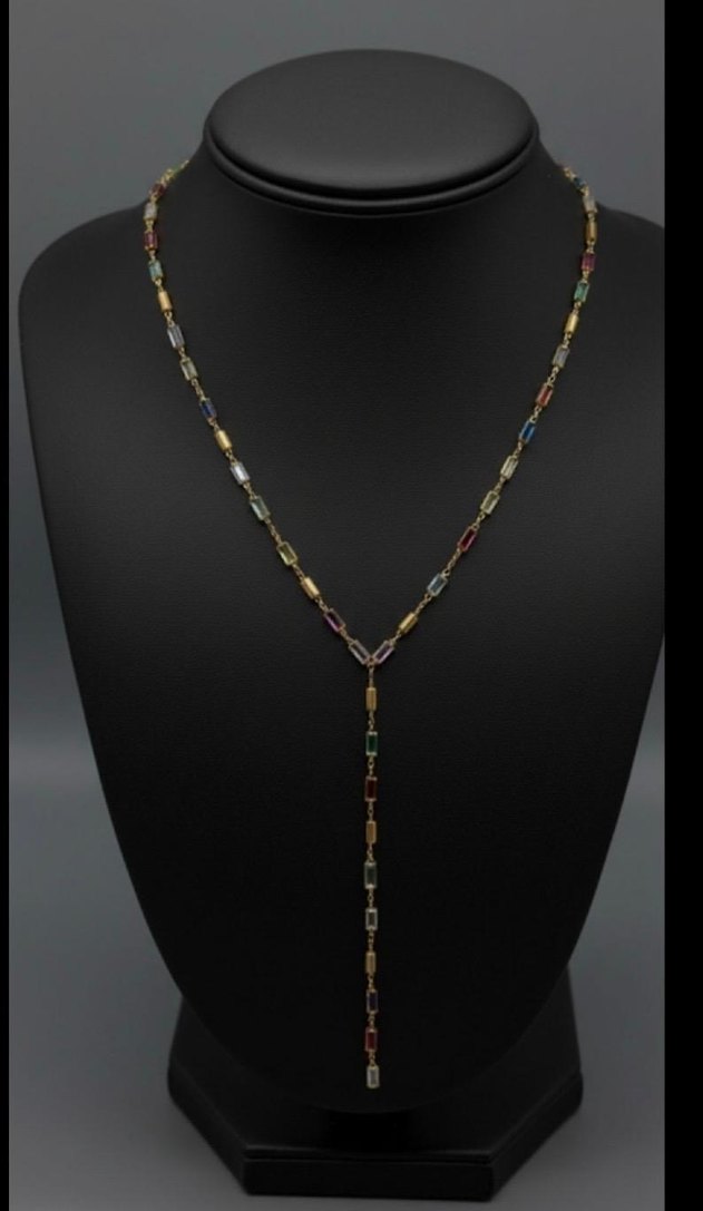 Uzun boy zincir detaylı, koyu renkli çok renkli tonlarda ve batik desenli kadın kolyesidir. Romantik akşamlar için bohem ve şık bir seçenektir.