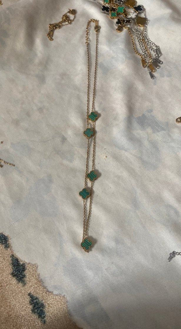 Uzun zincir detaylı, koyu turkuaz taşlı bohem tarzda kolye. İnce yılan deseniyle günlük kullanıma uygun.