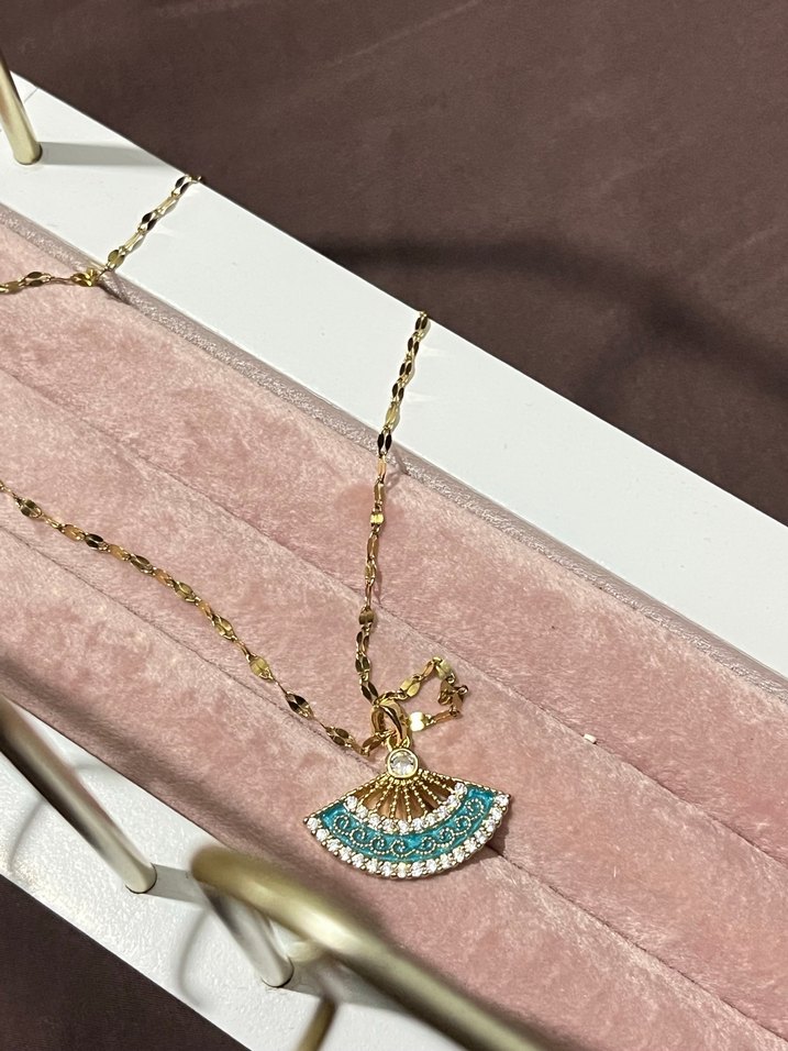 Uzun Zincir Detaylı Turkuaz Bohem Kolye