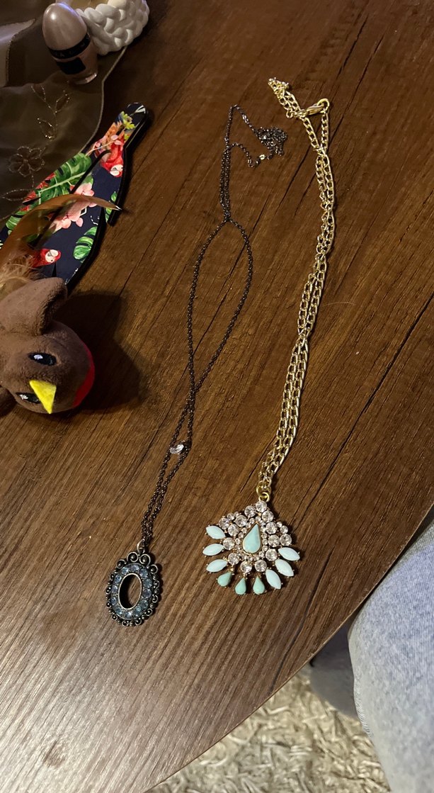 Uzun zincir detaylı, koyu turkuaz renkli nakışlı bohem tarzda kolye, günlük kullanıma uygun.