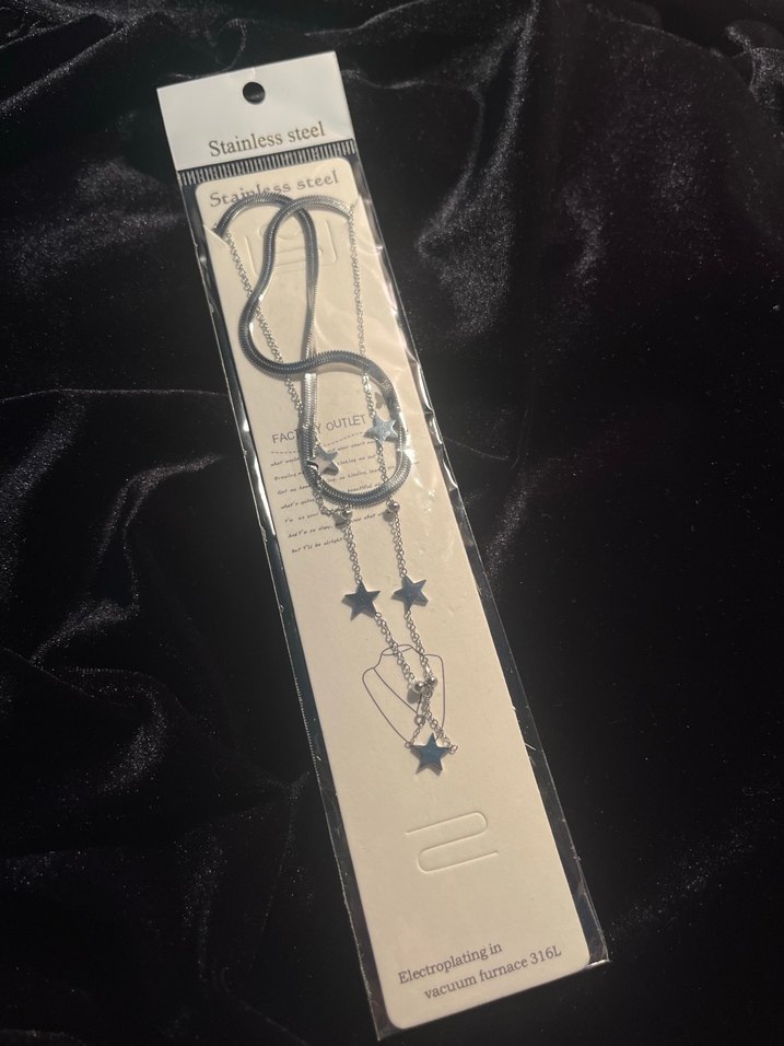 Paslanmaz çelikten yapılmış, uzun zincirli ve yıldız figürlü altın renkli kolye. Minimalist ve punk tarzına uygun, günlük kullanıma ideal. ⭐