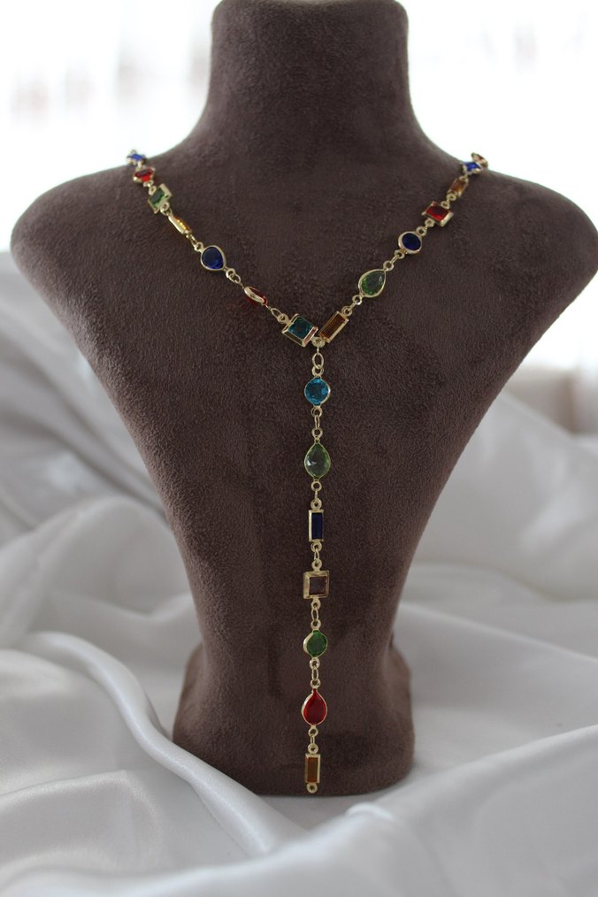 Uzun Zincirli Çok Renkli Bohem Kadın Kolye uzun y