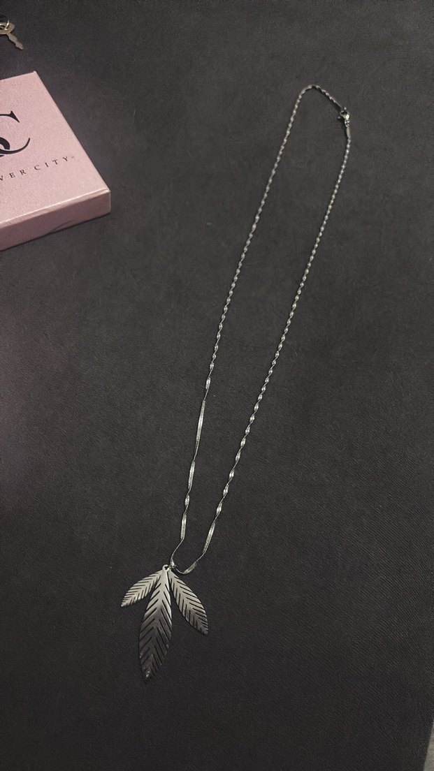 Gri Uzun Zincirli Yaprak Detaylı Kolye.Ürün hiç kullanılmamıştır.