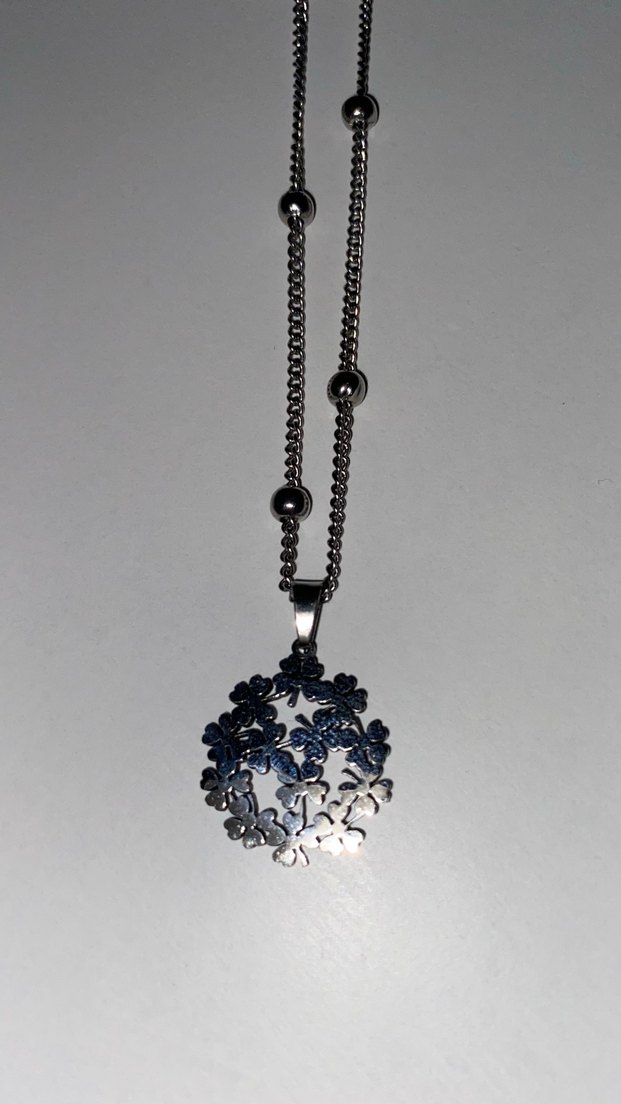 Uzun zincirli, mavi çiçek desenli kolye, gotik ve bohem tarzları birleştirir, günlük kullanıma uygundur.