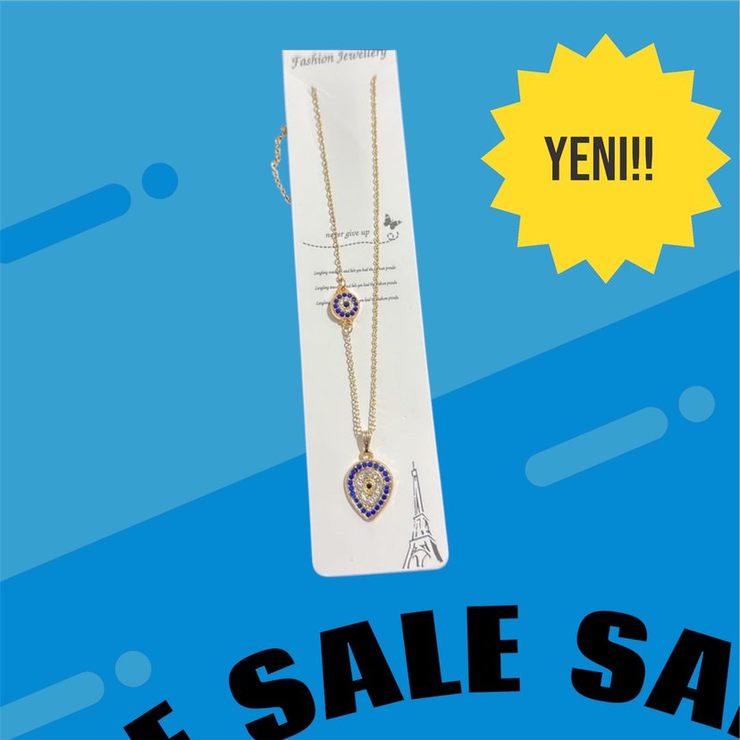 Uzun zincirli, renkli taşlı kolye ucu olan, nazar boncuğu tasarımlı bohem tarzda günlük kullanıma uygun altın renkli kadın kolye. Modest Parisian tasarım. ✨