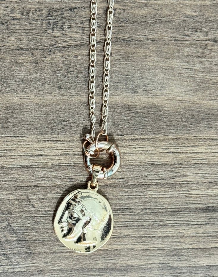 Uzun altın zincirli, yılan desenli detaylı vintage bohem tarzda kadın kolye, günlük kullanıma uygun.