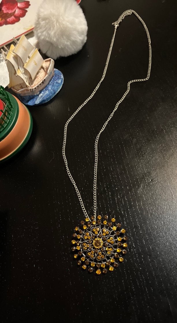 Uzun altın renkli zincirli, yılan desenli ve koyu amber taşlı bohem gotik tarza uygun kadın kolye.