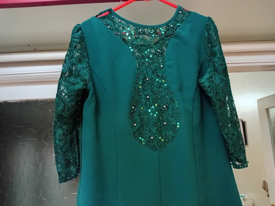 40-42 beden diz kapağı boyu, yarım kollu elbise. Payetli desenlerle süslenmiş, şık ve parlak bir görünüm sunar. Düğünler için uygundur. Sadece 1 kez giyildi.