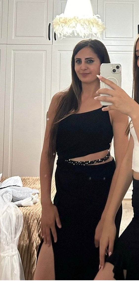 Bu siyah, yırtmaçlı gece abiye