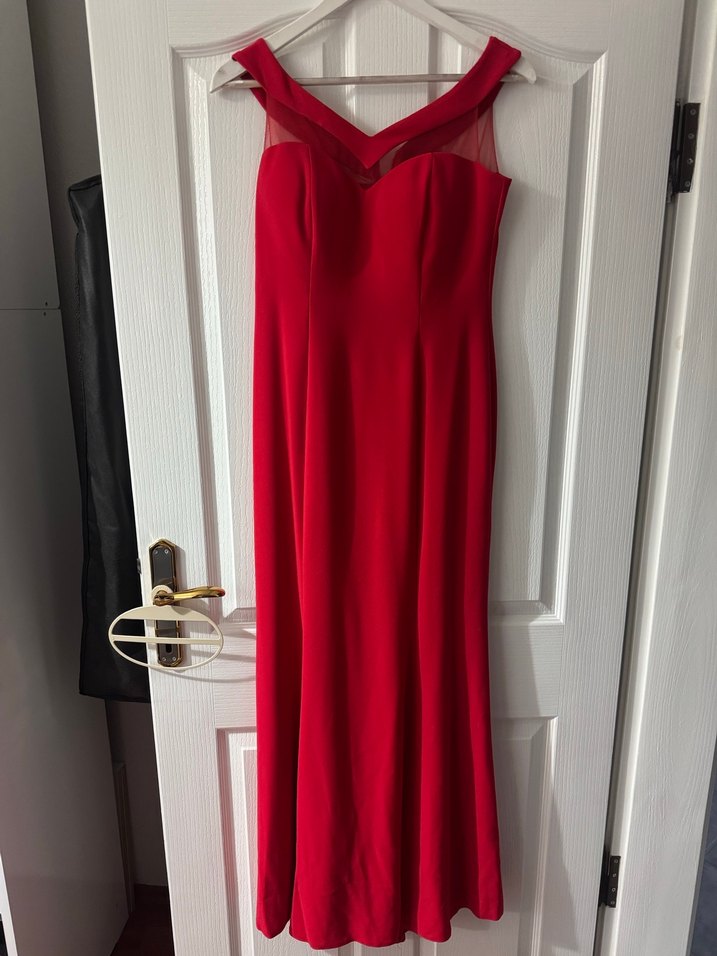 V Kırmızı Fit Uzun Abiye Elbise