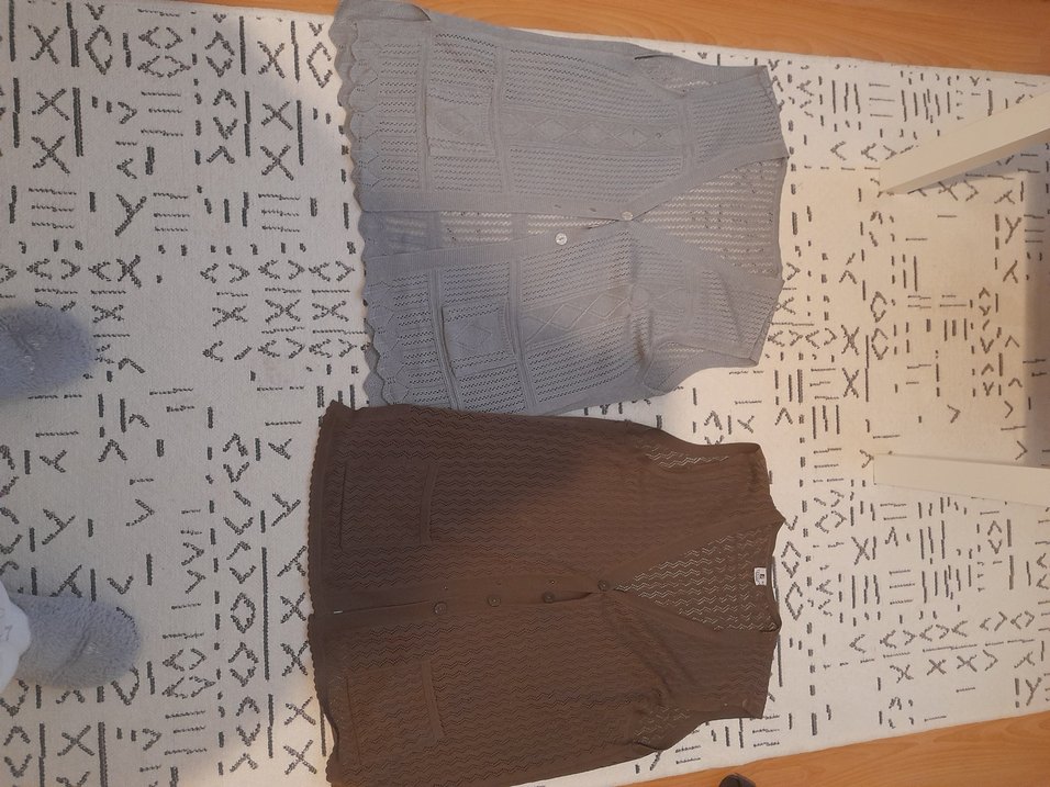 Gri ve kahverengi renklerde, V yakalı, vücuda oturan, örgü kadın yelekler. Bohem tarzda, midi boy ve günlük kullanıma uygun. Az kullanıldı kusursuz marka temsili 2li fiyatıdır