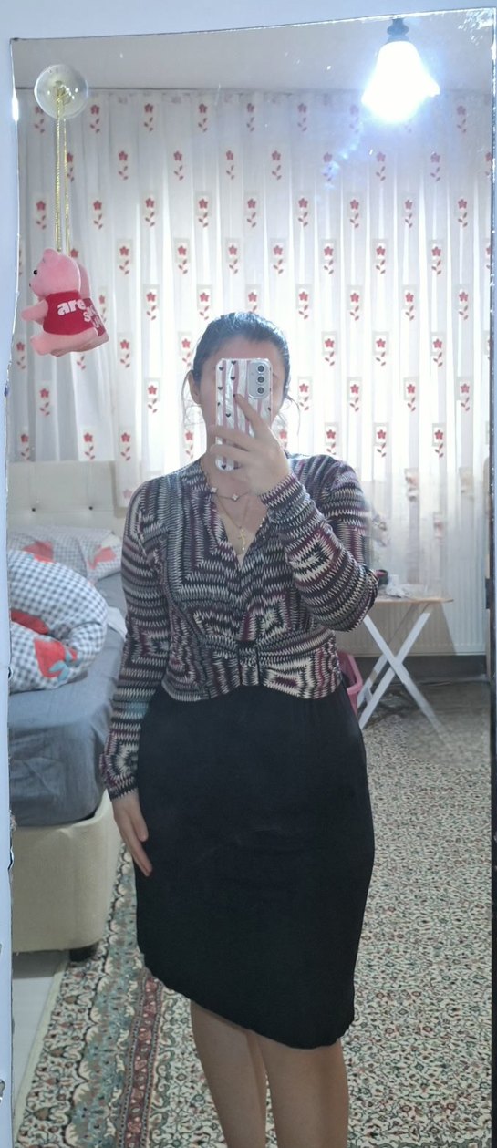 V Yaka Bağlamalı Triko Kadın Vintage elbise