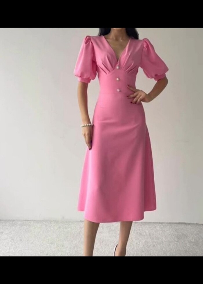 V yaka balon kol elbise