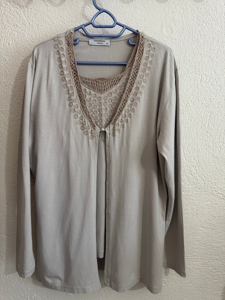 Bej renkli kadın hırka, bol kesim ve uzun kolludur. Yumuşak örme kumaştan, V yakalı ve örme detaylıdır. Günlük kullanıma uygun bohem tarz sunar.