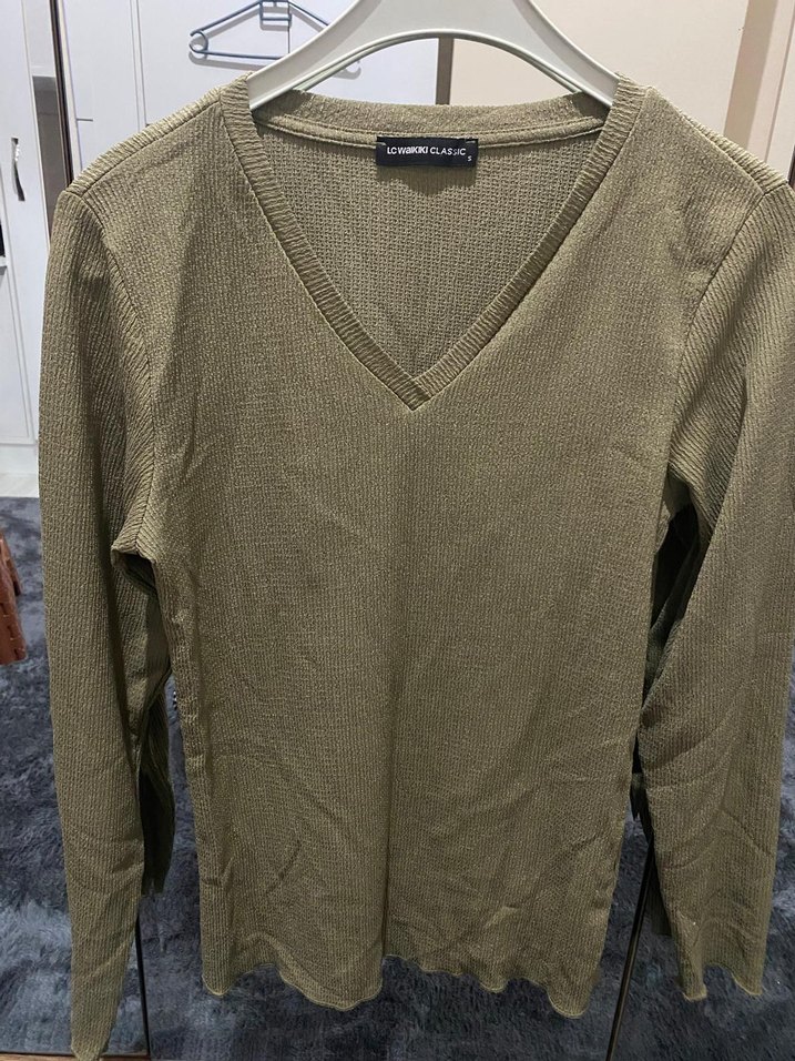 V Yaka Bej Kadın bluz
