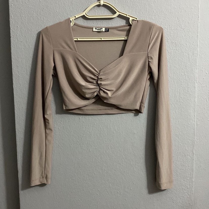 V Yaka Bej Uzun Kollu Kadın Bluz