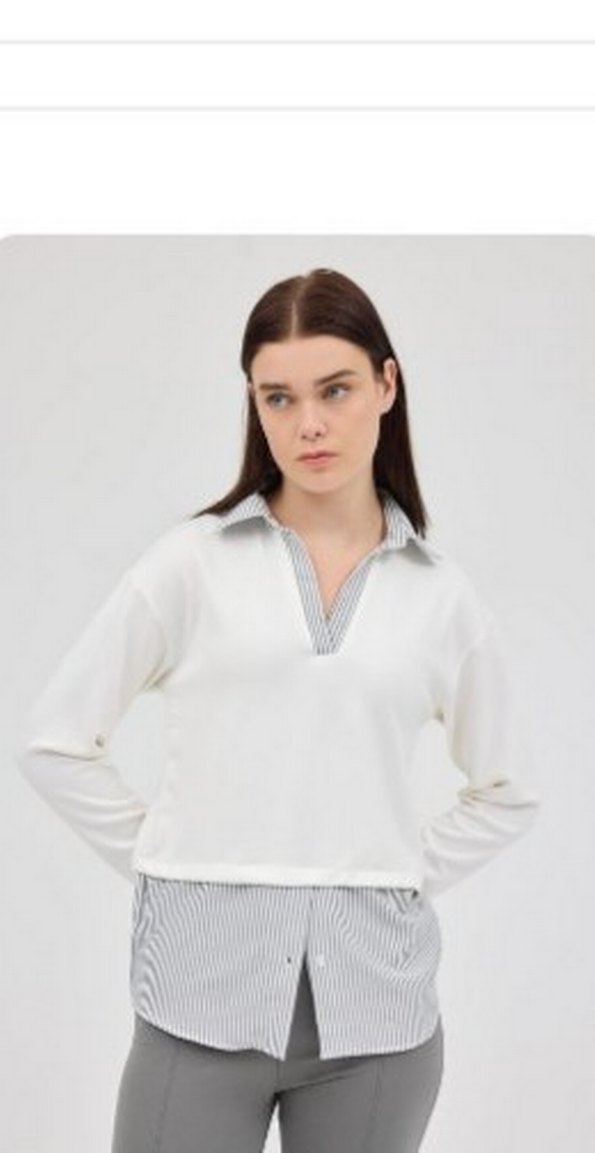 Pamuk kumaştan, V yaka ve uzun kollu beyaz kadın sweatshirt. Rahat kesimiyle günlük sokak stiline uygun, şık ve rahat bir tercih.