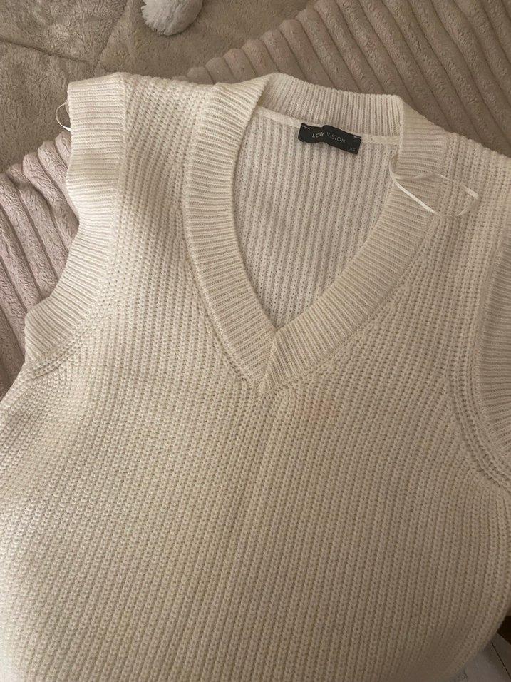 V yaka, kolsuz ve bol kesim beyaz triko süveter. Yumuşak örgü dokusu ve sade tasarımıyla rahat ve şık bir tercih. Hiç giyilmedi yepyeni