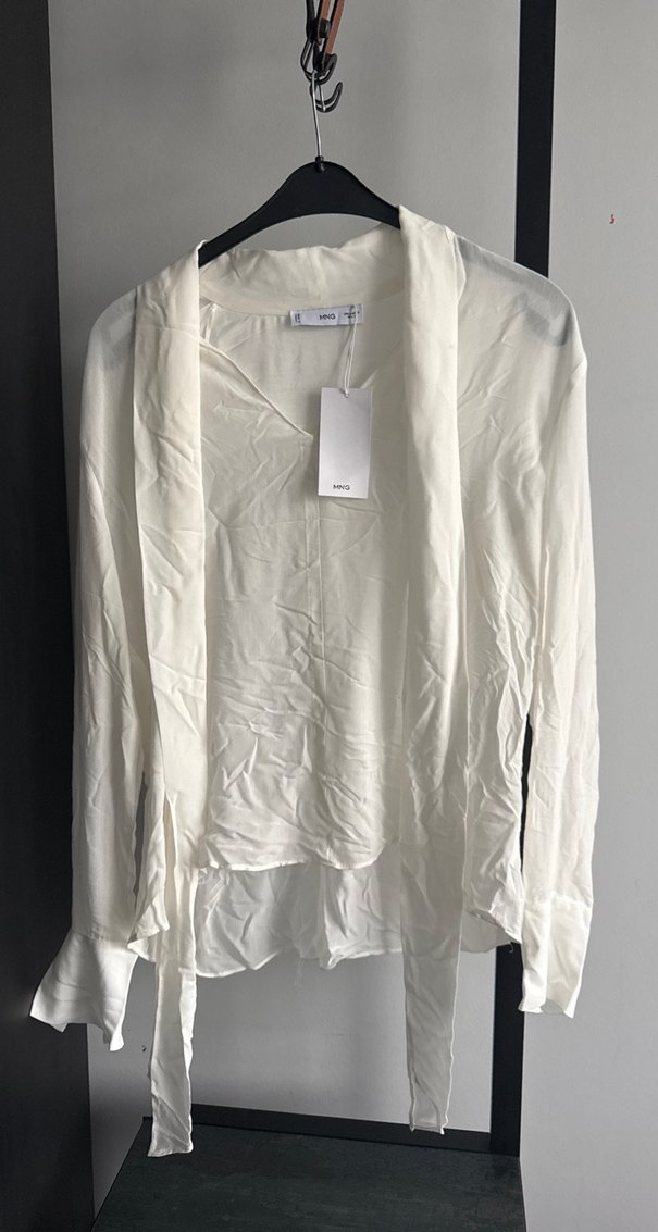 Yumuşak keten kumaştan, V yakalı ve salaş kesimli beyaz uzun kollu gömlek. Günlük kullanıma uygundur.