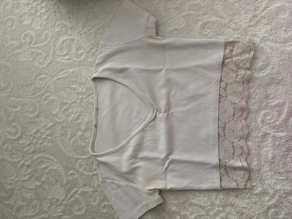 V yaka, kısa kollu beyaz crop top. Yumuşak keten kumaştan, sokak stiline uygun rahat kesim.