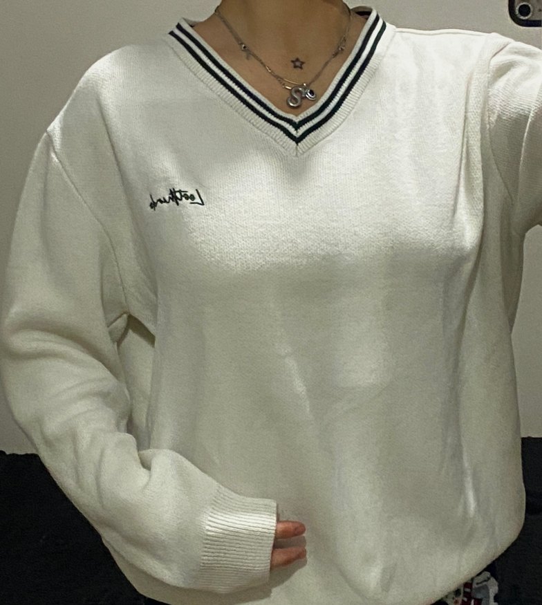 Beyaz renkli, V yakalı ve uzun kollu, nakış detaylı örme kazak. Rahat kesimi ve normal boyu ile günlük kullanıma uygun. ✨