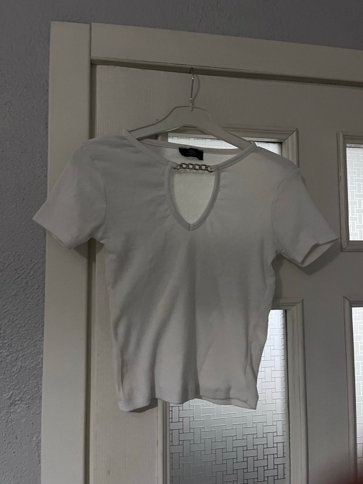 V yaka ve kısa kollu, pamuklu kumaştan beyaz, vücuda oturan kadın tişörtü. Desensiz sade tasarımı günlük rahat kullanıma uygun, zahmetsiz şıklık sunar.