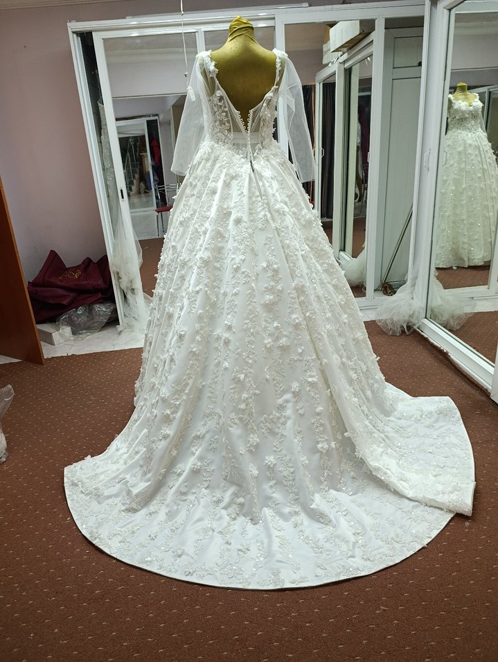 V Yaka Beyaz Vintage A Kesim Gelinlik özel dikim