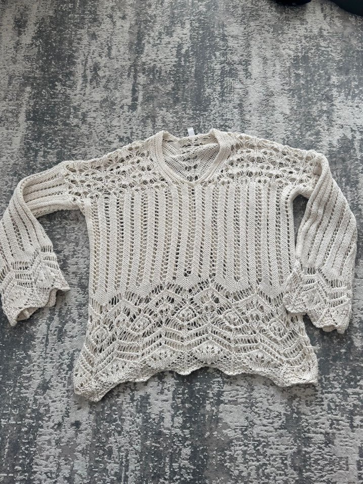 Uzun kollu, bol kesim bohem tarzında örgü kadın kazak. V yaka ve detaylı örme deseniyle, günlük kullanıma uygun. Topshop File Kazak. M beden sorunsuz. Sıfır ayarında. Sayılı giyildi.Sayfamda ürün iadesi kabul edilmez