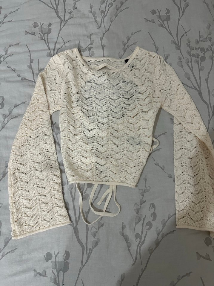 Beyaz renkli, V yakalı ve uzun kollu, midi boyda bol kesim örgü kadın kazak. Günlük kullanıma uygun bohem rahatlığı sunar.