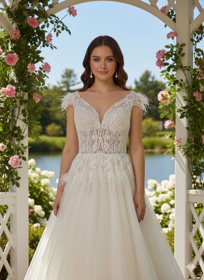 V Yaka Bohem Uzun Beyaz A Kesim Gelinlik