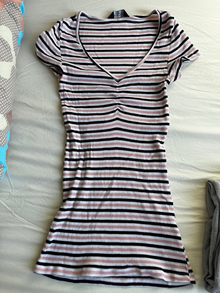 V Yaka Çizgili Hamile Tişörtü