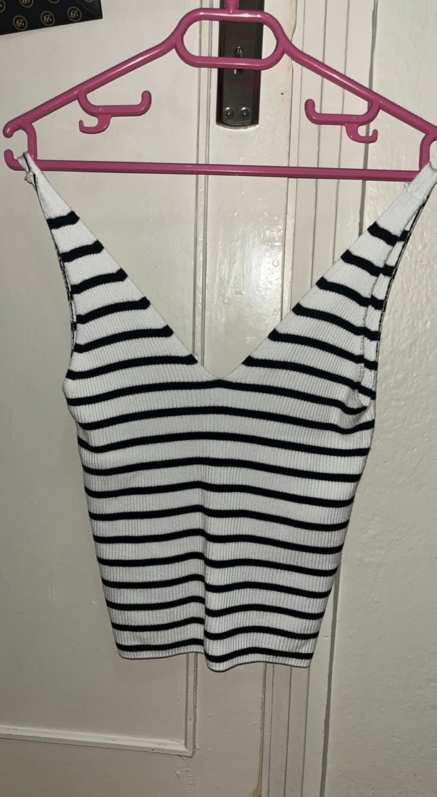 V yaka, çizgili ve triko kumaştan yapılmış, günlük kullanıma uygun, vücuda oturan kadın atlet. deforme yoktur, esnektir , S-M rahatlıkla olur .