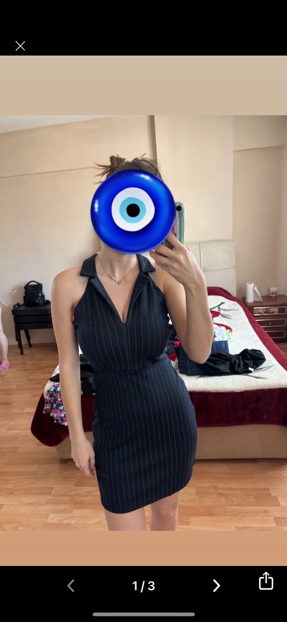 V yaka, askılı ve çizgili desenli bu dar kesim mini elbise, sentetik kumaştan üretilmiştir. Tarz katmak için yırtmaç detayı bulunur.