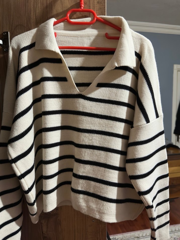 V Yaka Çizgili Örgü Kadın Kazak