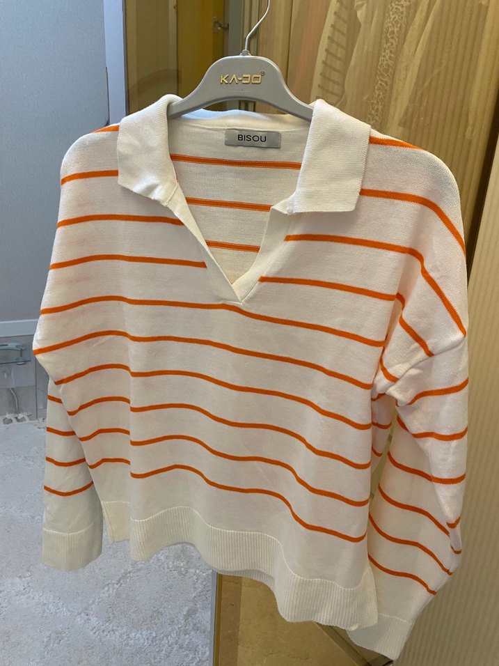 V Yaka Çizgili Pamuklu Kadın Triko