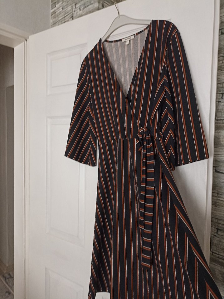 V Yaka Çizgili Uzun kiremit siyah Elbise