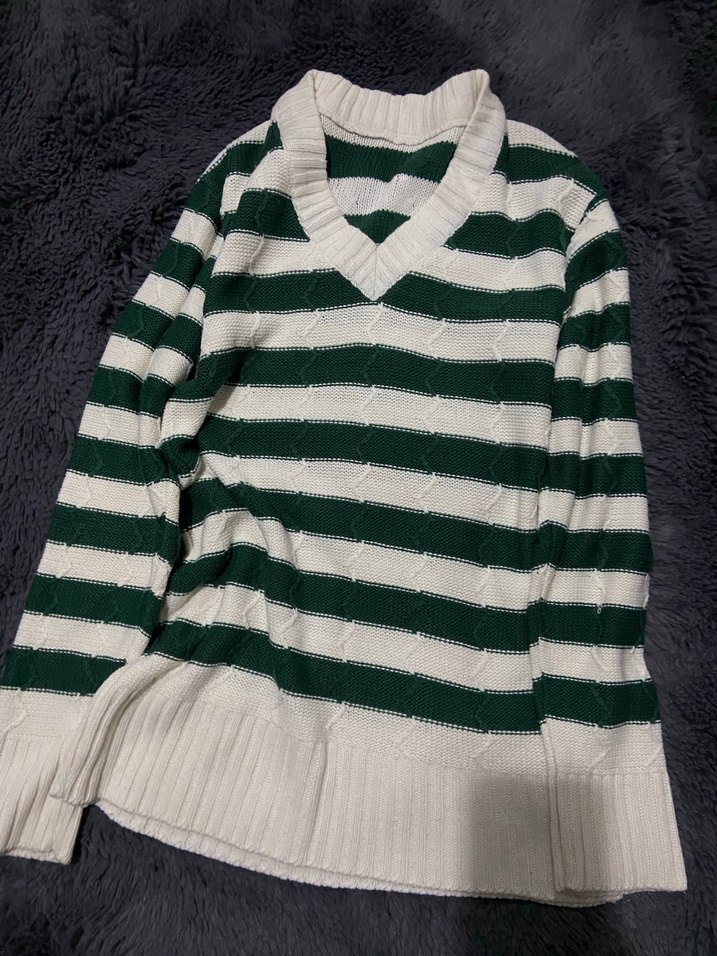 yeşil ve beyaz çizgili vintage kazak