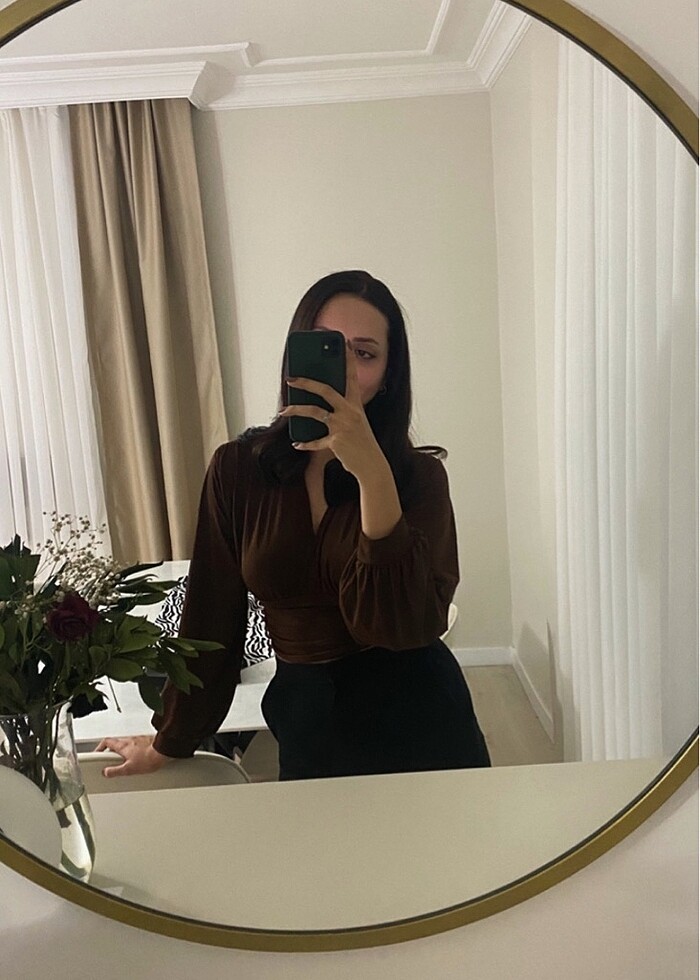 Sayılı kullanıldı, üstte çok şık duruyor. Dekoltesini iğneyle ayarlayabiliyorsunuz.L beden ancak likralı bence s ve m bedene de uyumlu