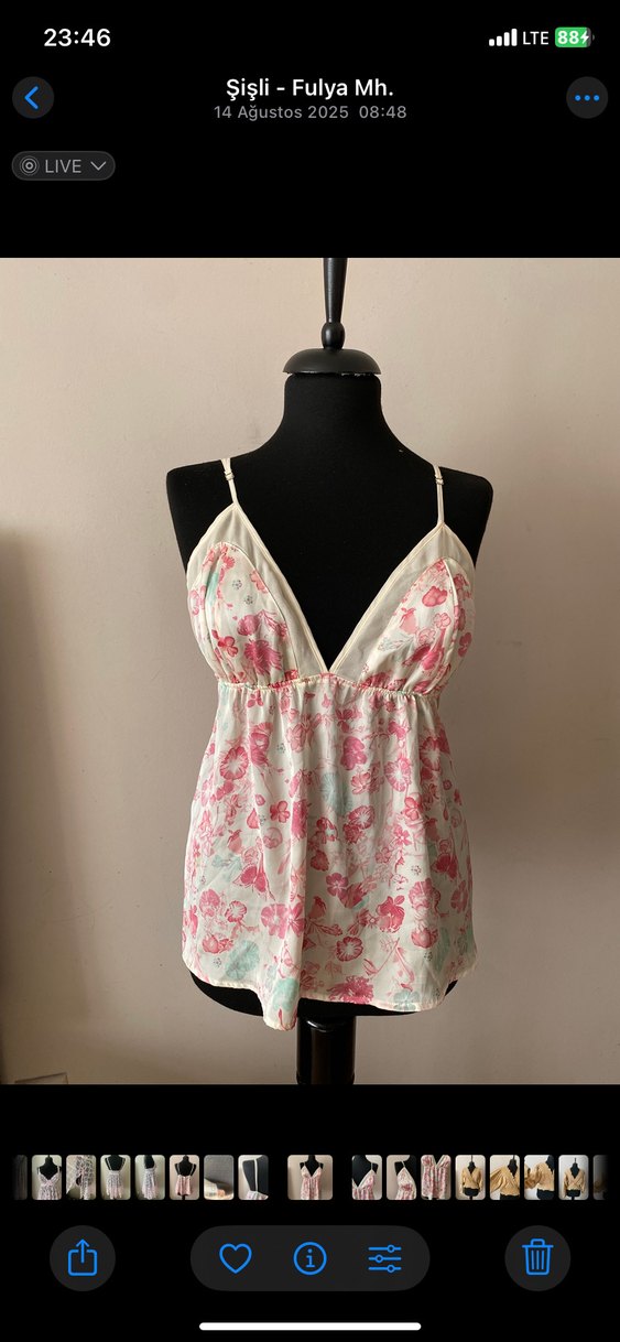 V yaka, kolsuz, bol kesim pembe pastel tonlarda bağlama desenli ve dantel detaylı bohem tarzı büstiyer. Günlük kullanıma uygun, vintage esintili.