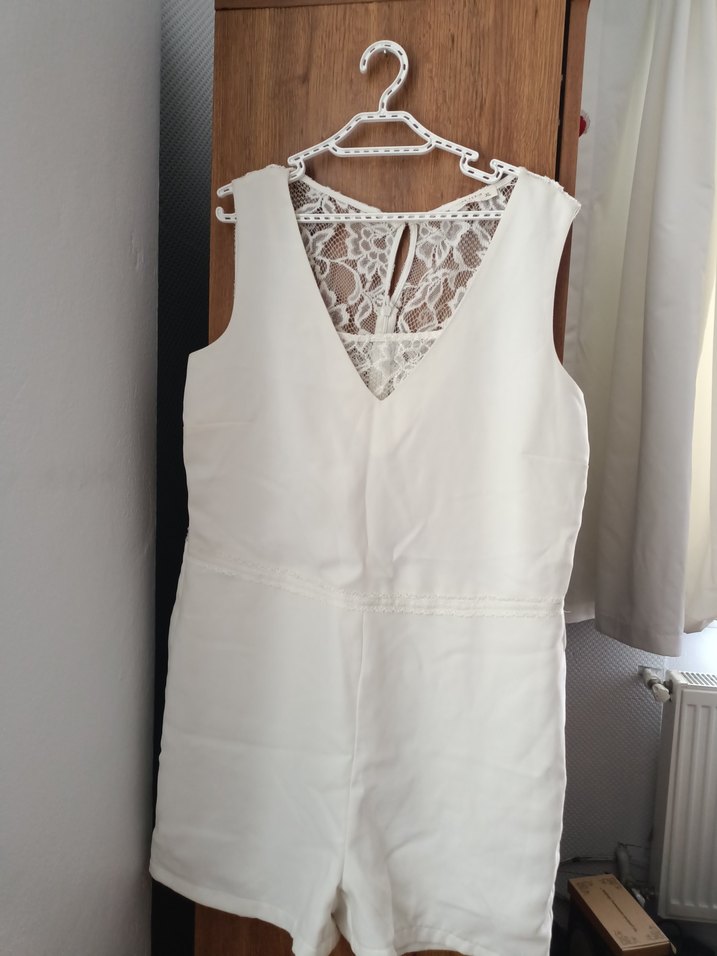 V yaka ve dantel sırt detayıyla bohem ve Paris tarzı uyumlu, kolsuz mini tulum. Trend belirleyici şıklık sunar. beden xl Defacto marka boy 85cm. bel 47 cm.x2 kalça 50 cm.x2 ağ kısmı 32 cm. iki koltuk arası 50 cm x2