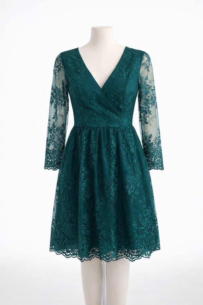 V yaka dantel detaylı Uzun kollu, astarlı