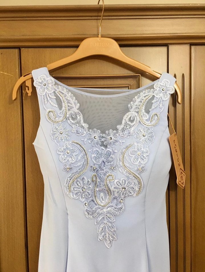 V Yaka Dantelli Bebek Mavisi Düğün Elbisesi