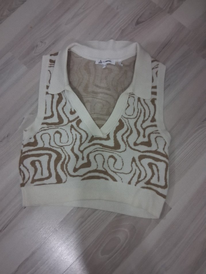 2 kol arası 43 cm uzunluk 50 cm yaka, kısa kesim, bej renkli triko süveter, soyut desenlerle hareketlendirilmiş. rahat kesimiyle sokak stiline uygun, dış mekan kullanımı için ideal.