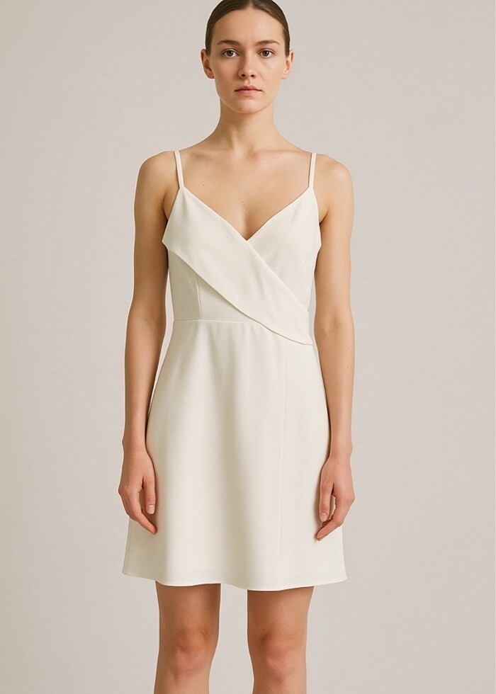 Tok kumaşlı kırık beyaz elbise sorunsuz. Mezuniyetimde giymiştim, bedeni küçük old için satıyorum.