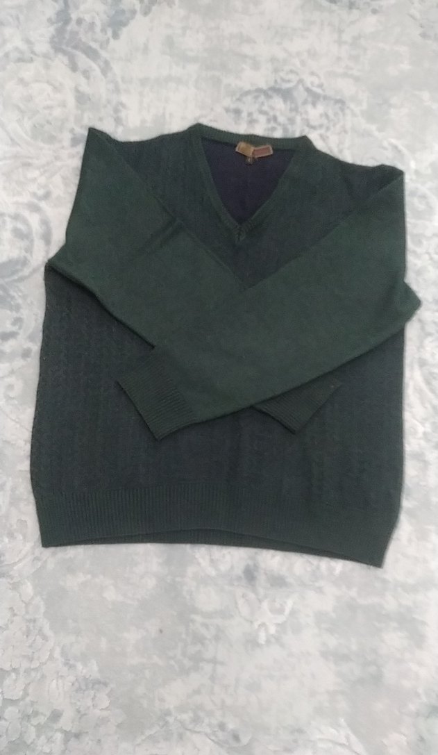 erkek yün kazak, V yaka ve uzun kollu, örgü dokusuyla rahat bir görünüm sunar. Salaş kesimi ve normal boyuyla günlük kullanıma uygundur.