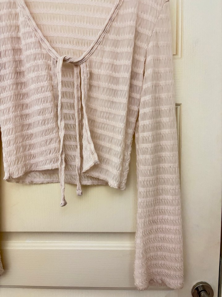 Ekru renkli, piliseli tasarıma sahip premium bağlama detaylı bluzdur. İspanyol kollu ve V yaka, yumuşak polyester karışımlı, düz kesim ve midi boydadır. Regular kalıptır.