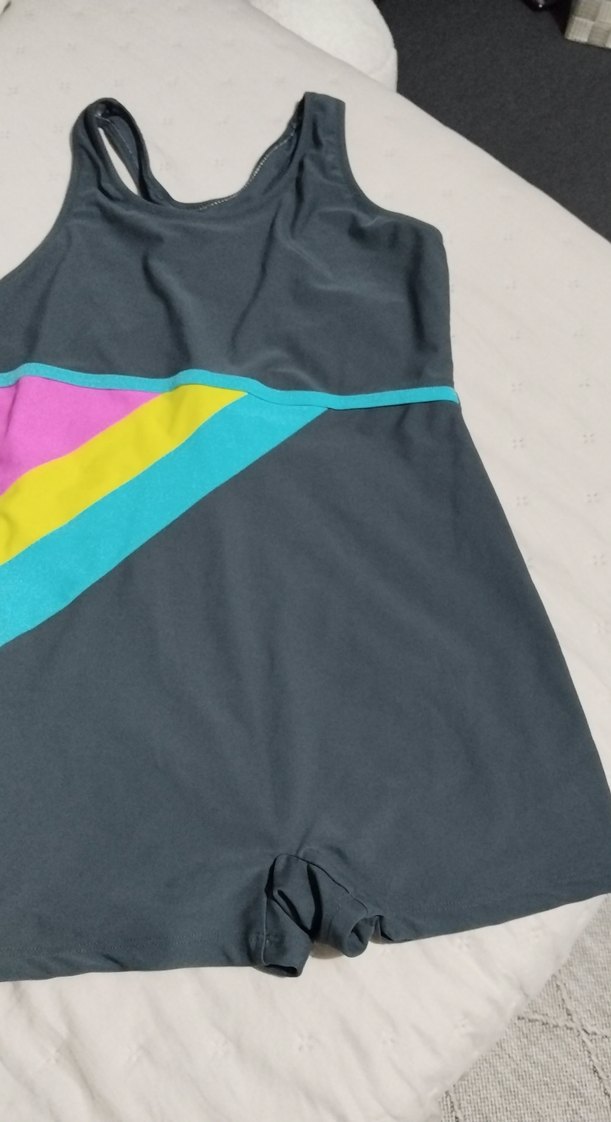 V yaka, fermuarlı, çok renkli çizgili gri kadın aktif elbise. Kolsuz, vücuda oturan kesimi ve midi boyuyla spor ve sokak stiline uygun. ♀️